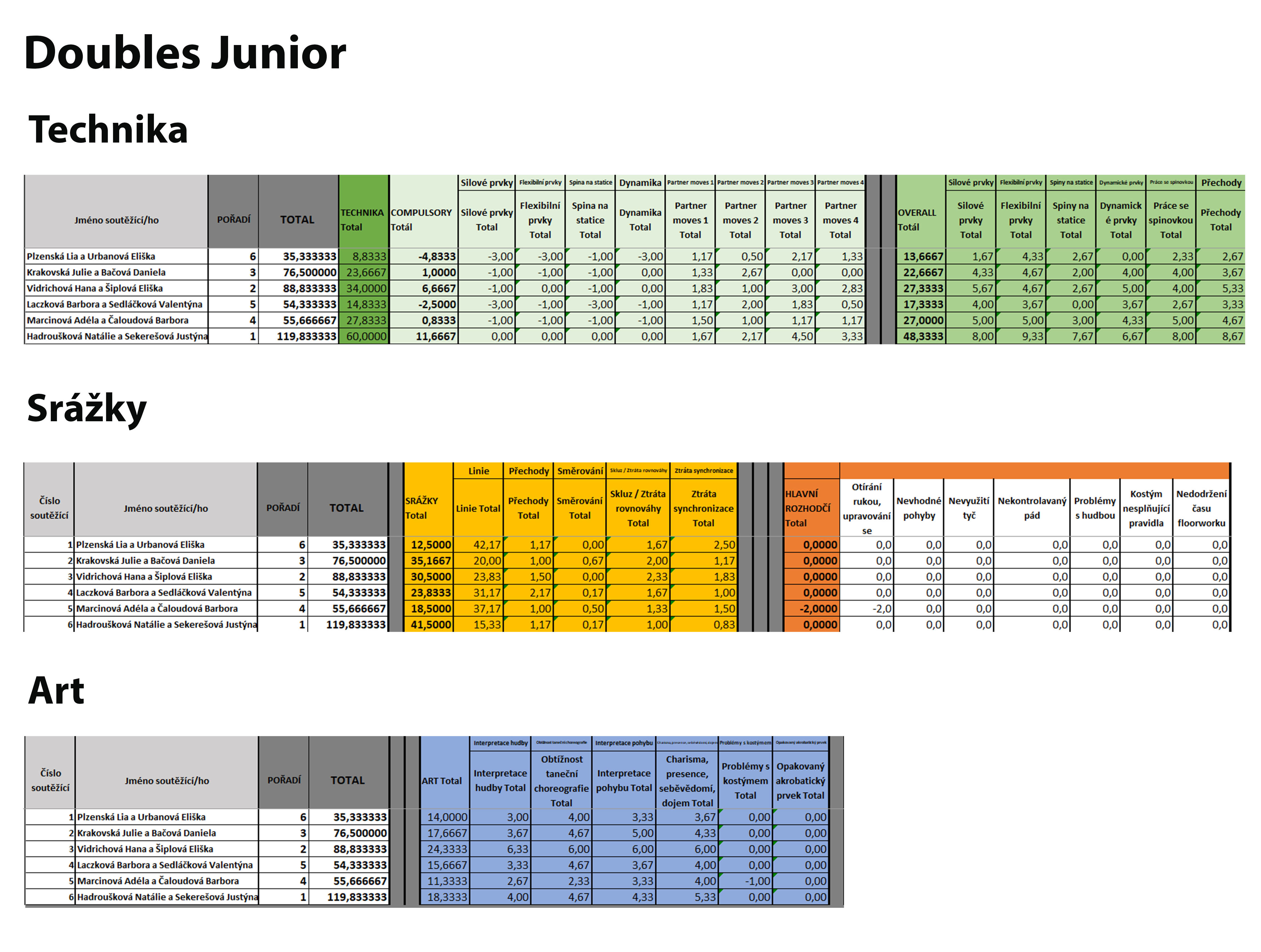 Doubles Junior - podrobné hodnocení