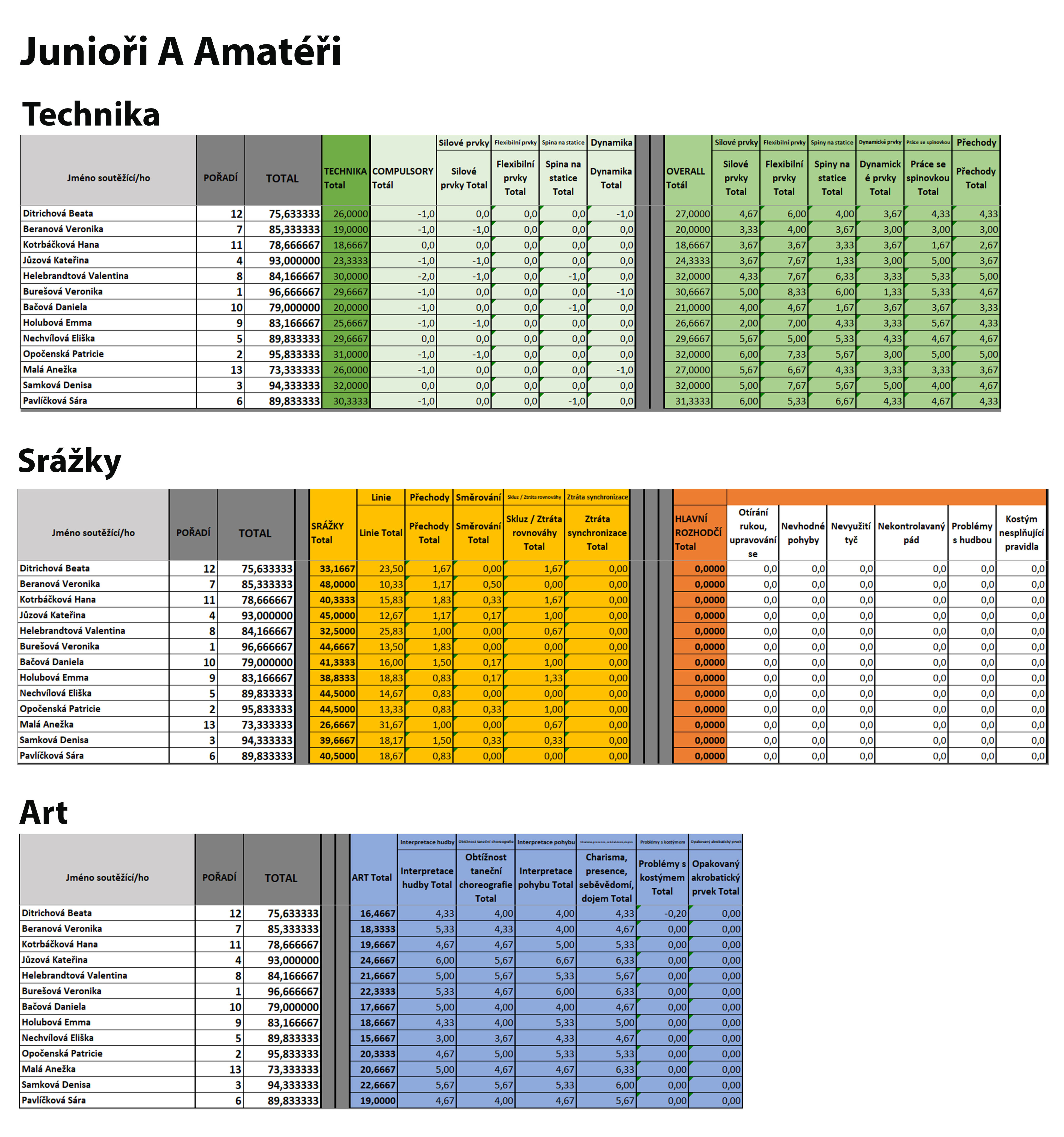 Junioři A Amatéři - podrobné hodnocení