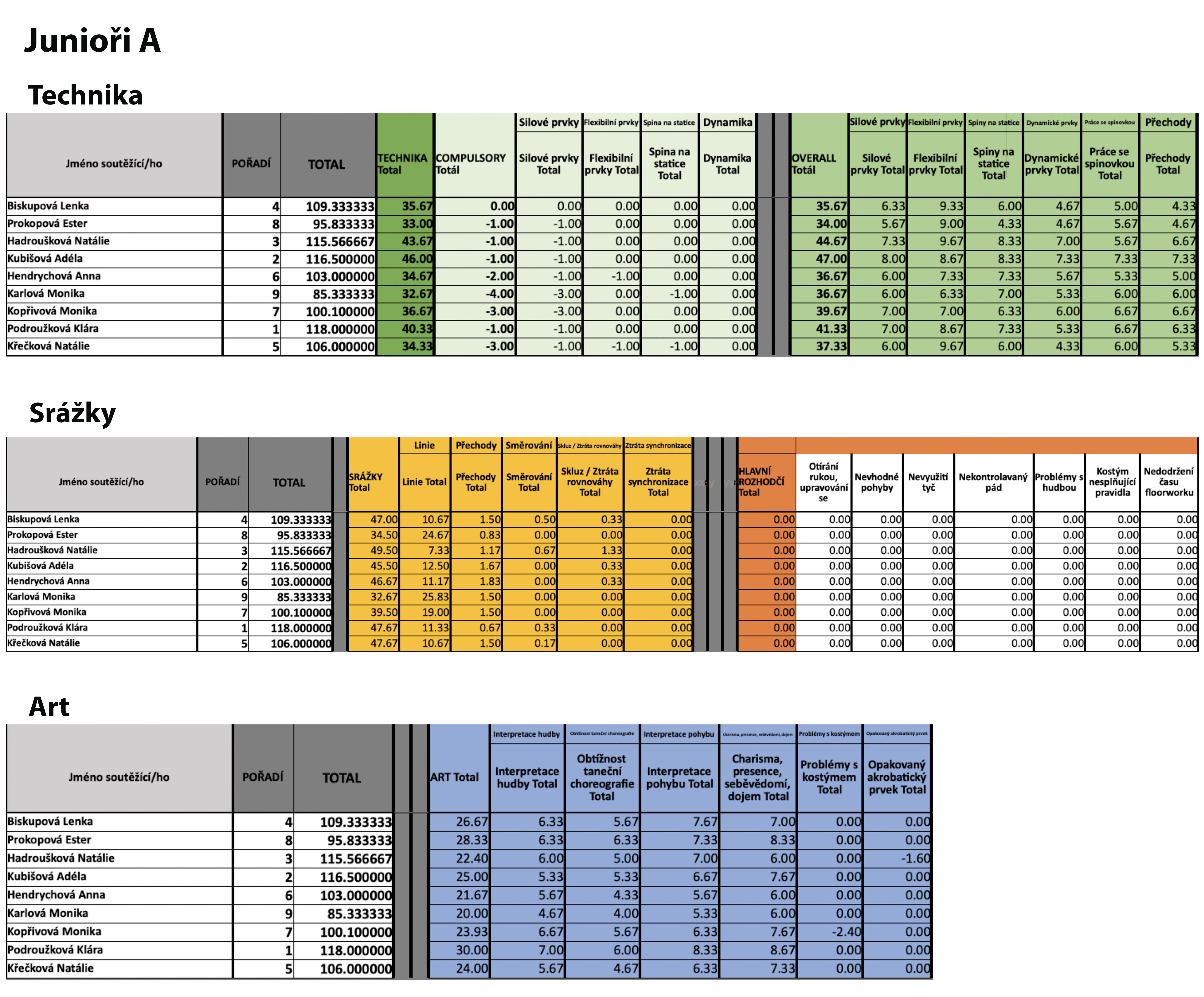 Junioři A - podrobné hodnocení