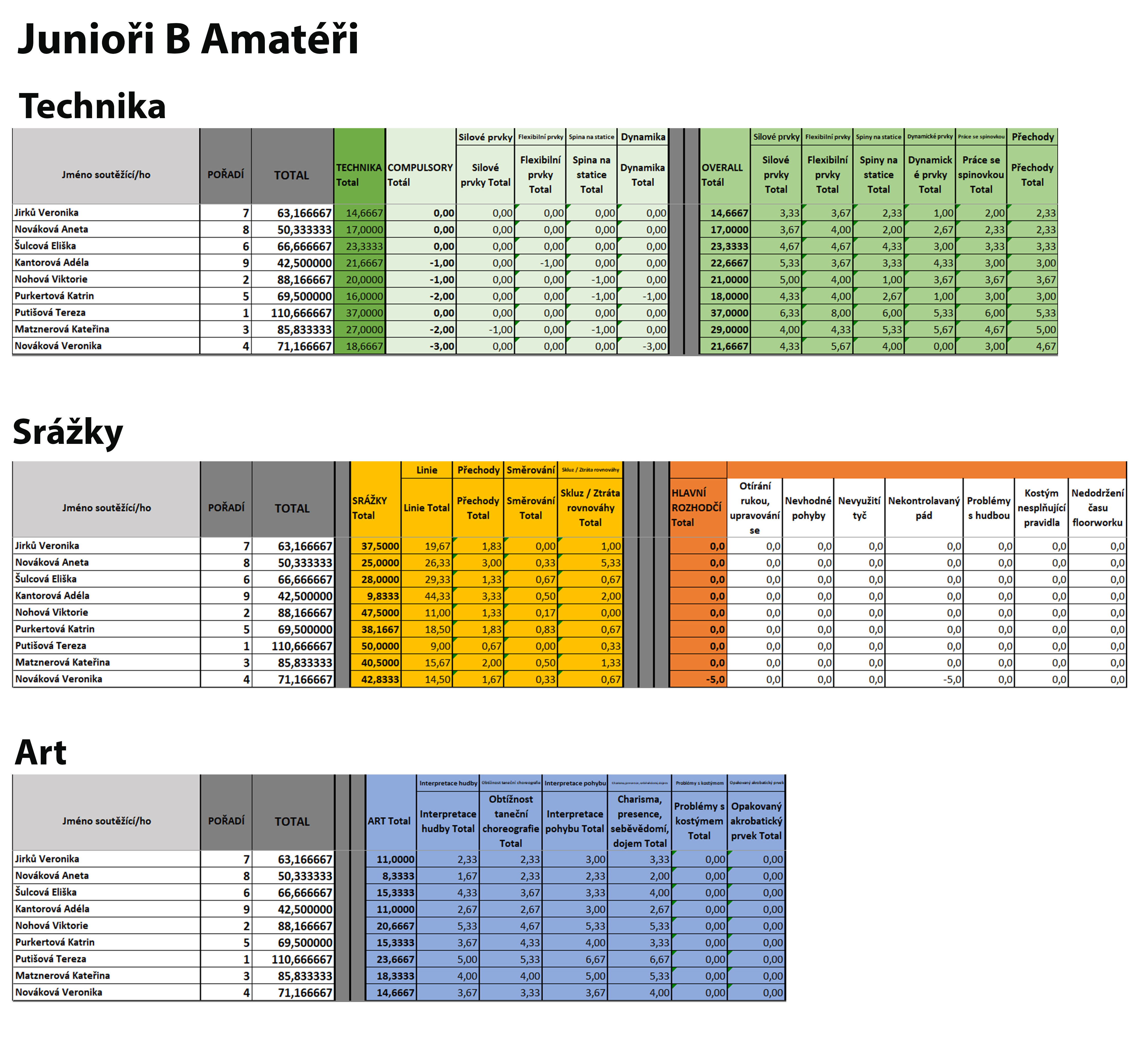 Junioři B Amatéři - podrobné hodnocení