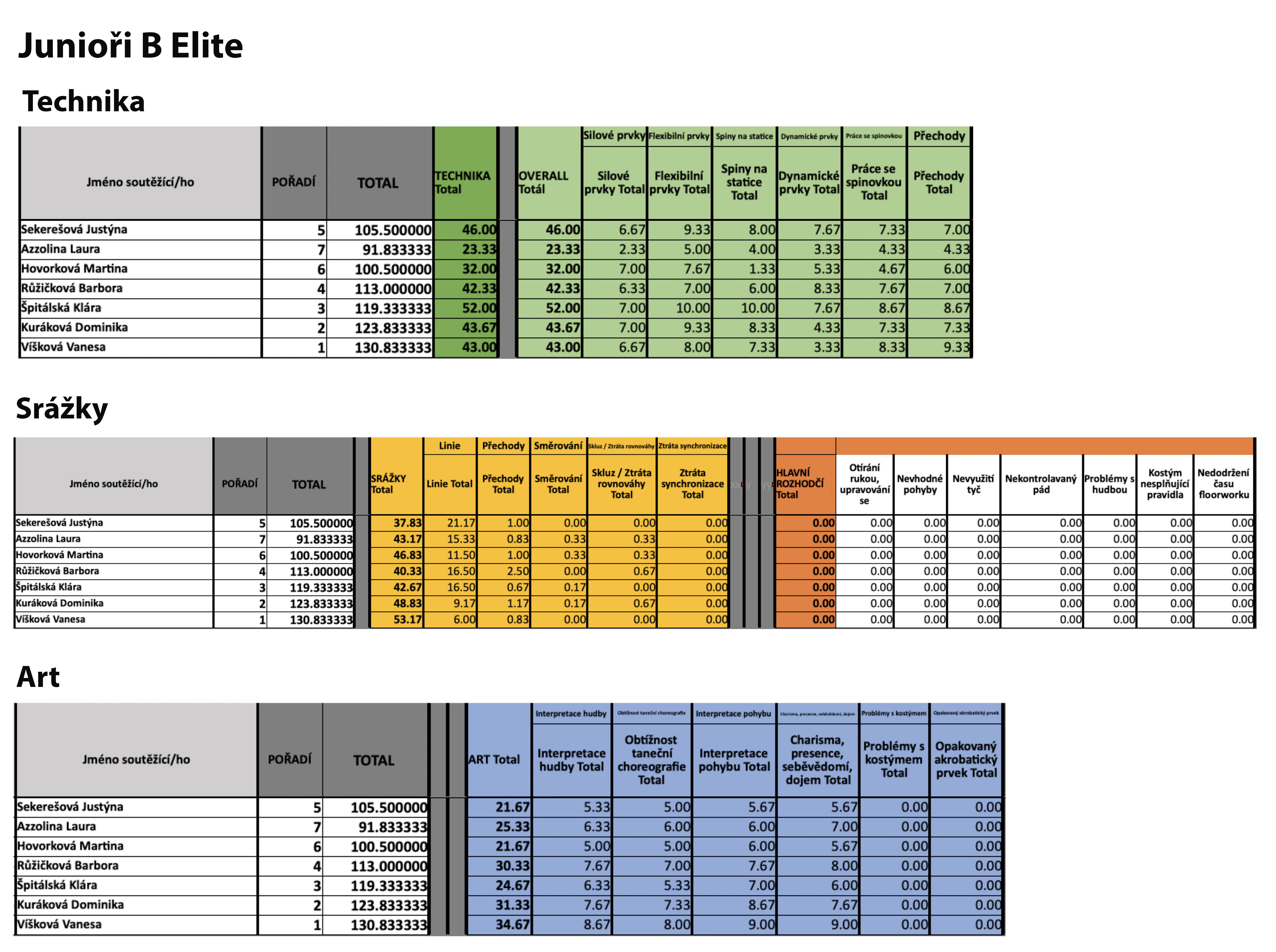 Junioři B Elite - podrobné hodnocení