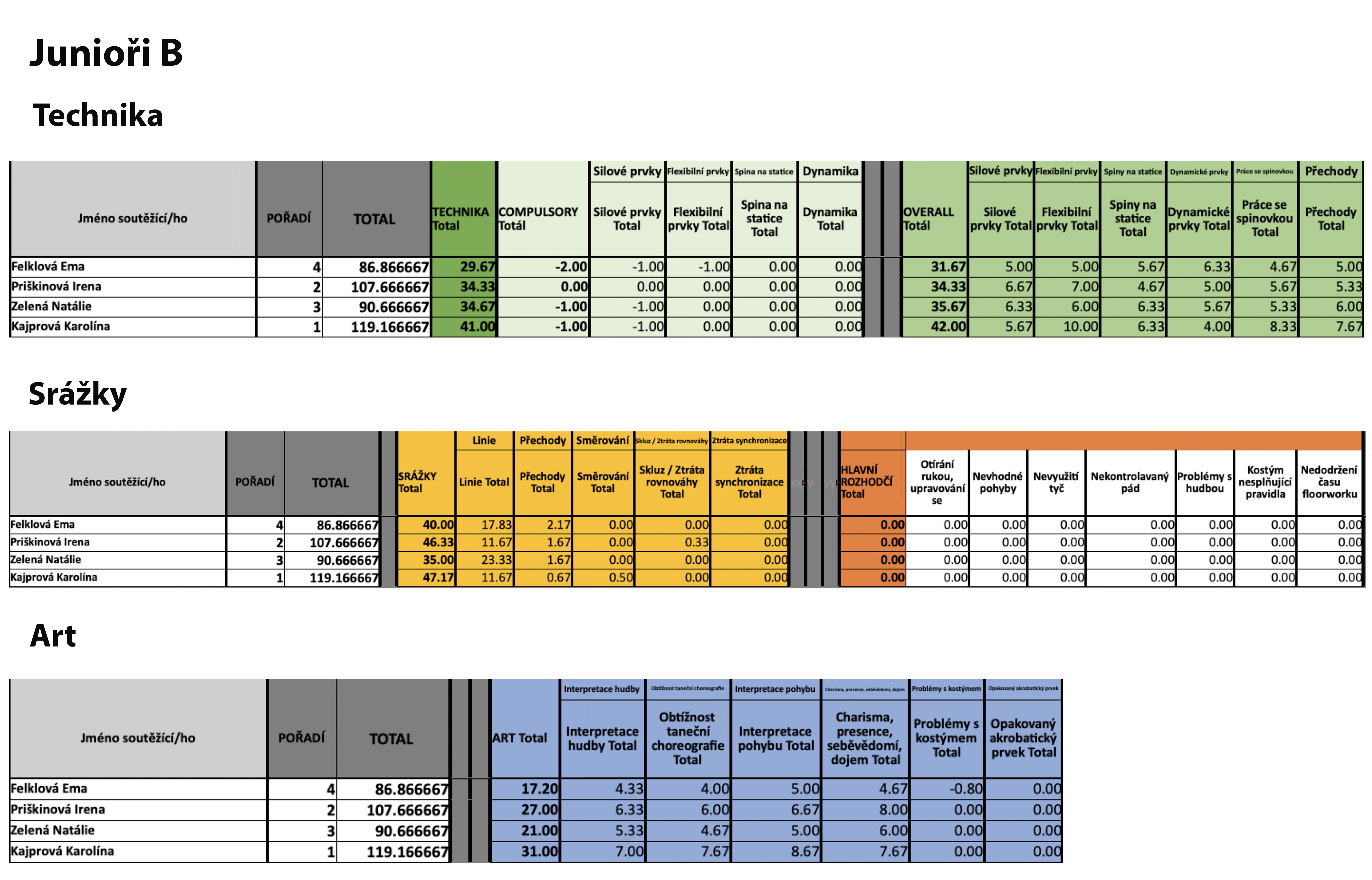 Junioři B - podrobné hodnocení