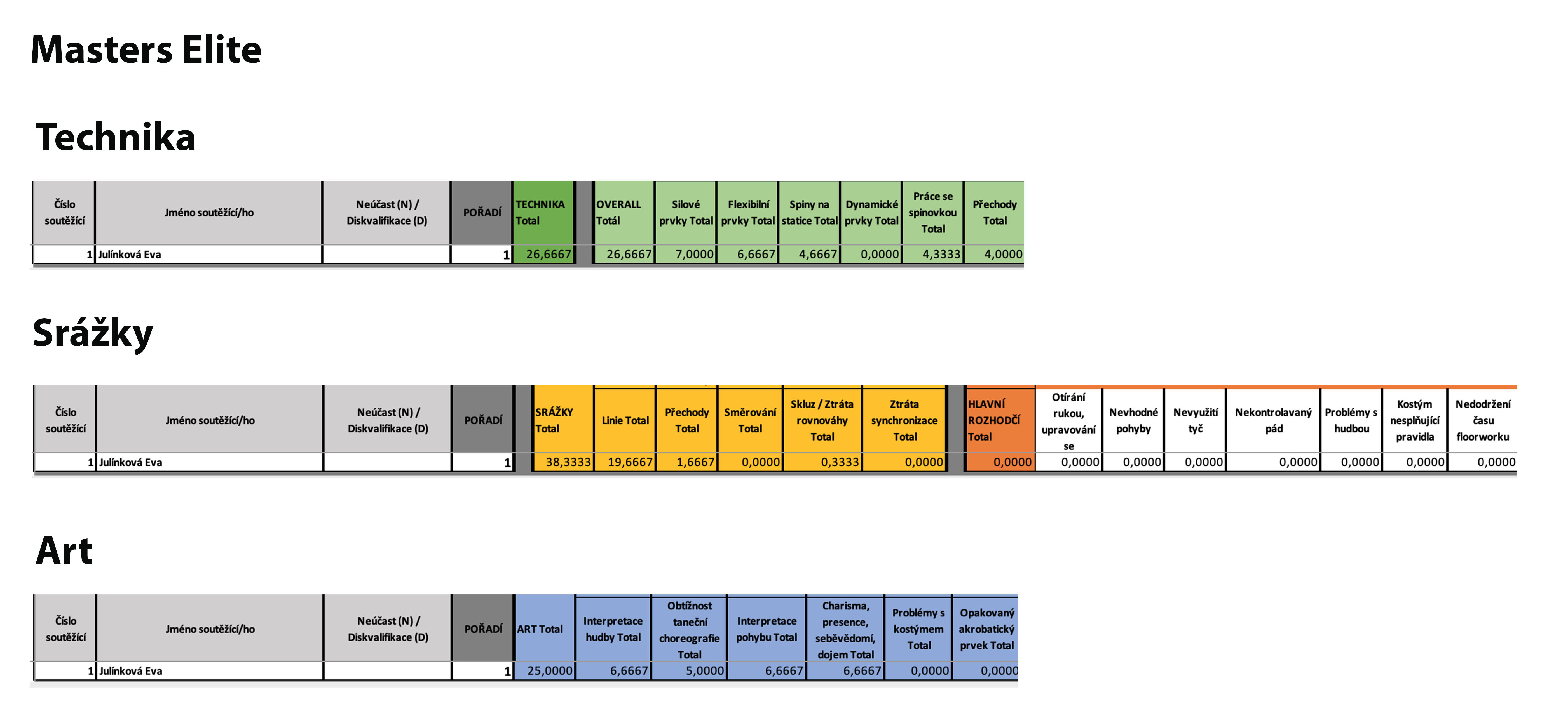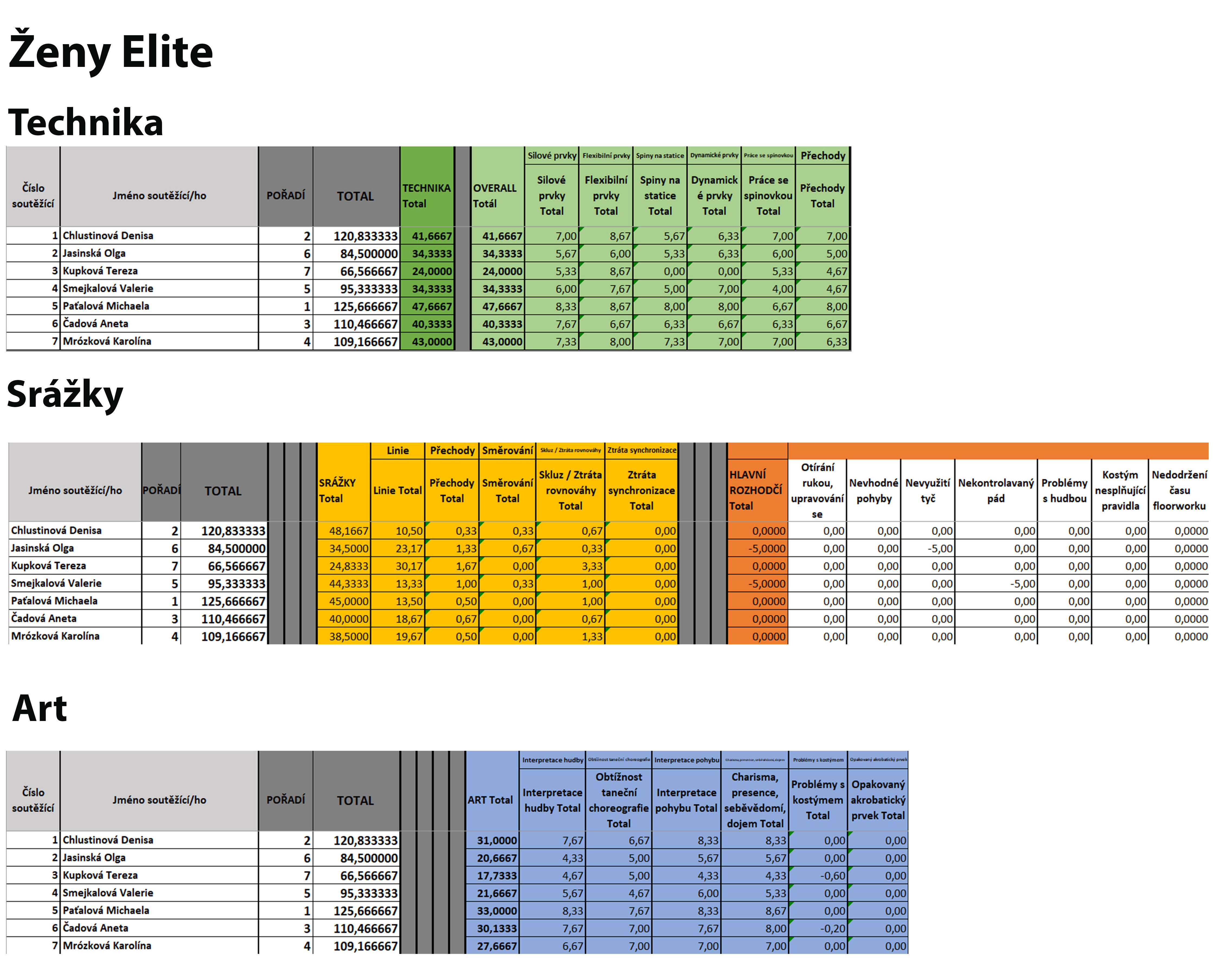 Ženy Elite - podrobné hodnocení