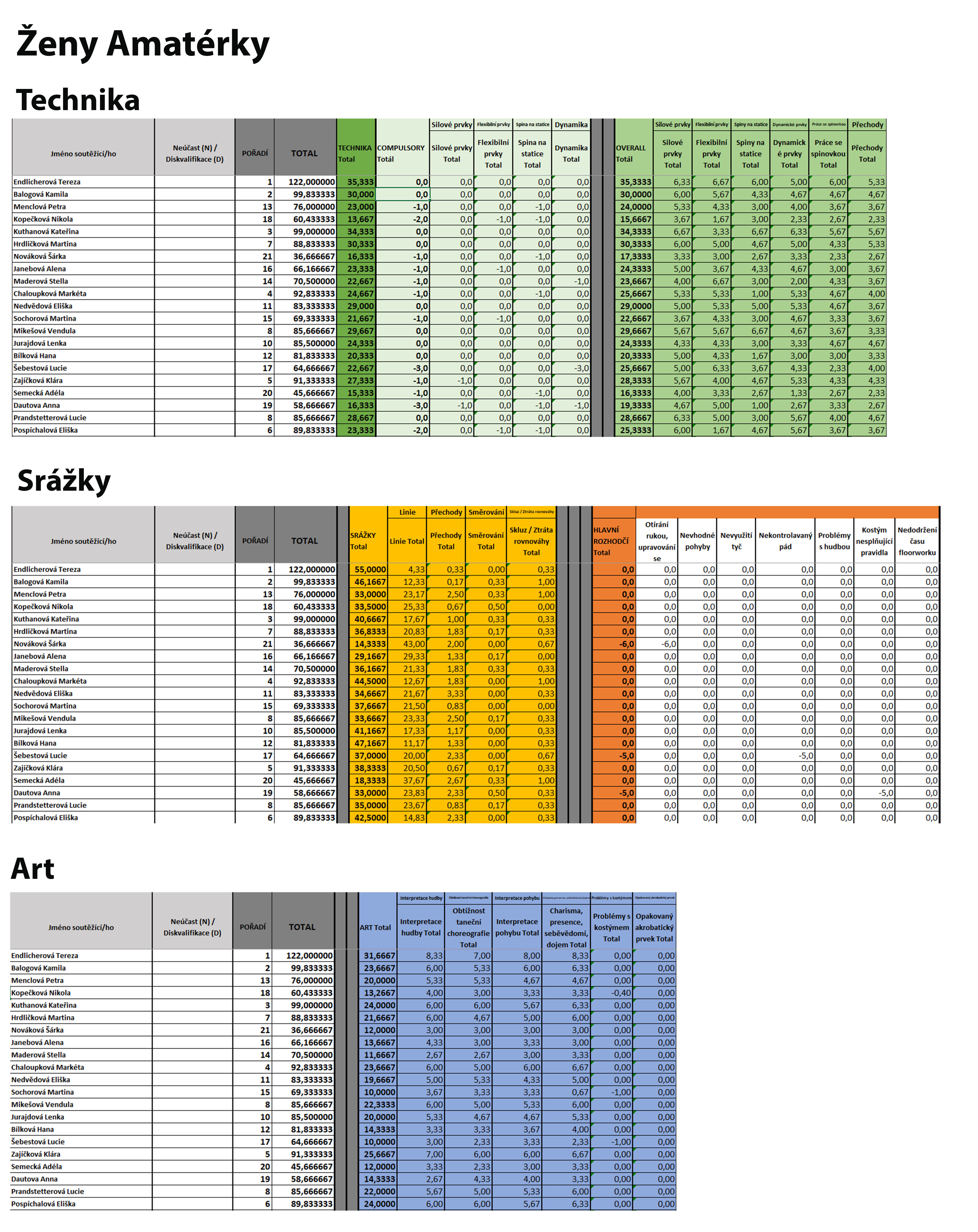 Ženy Amatérky - podrobné hodnocení