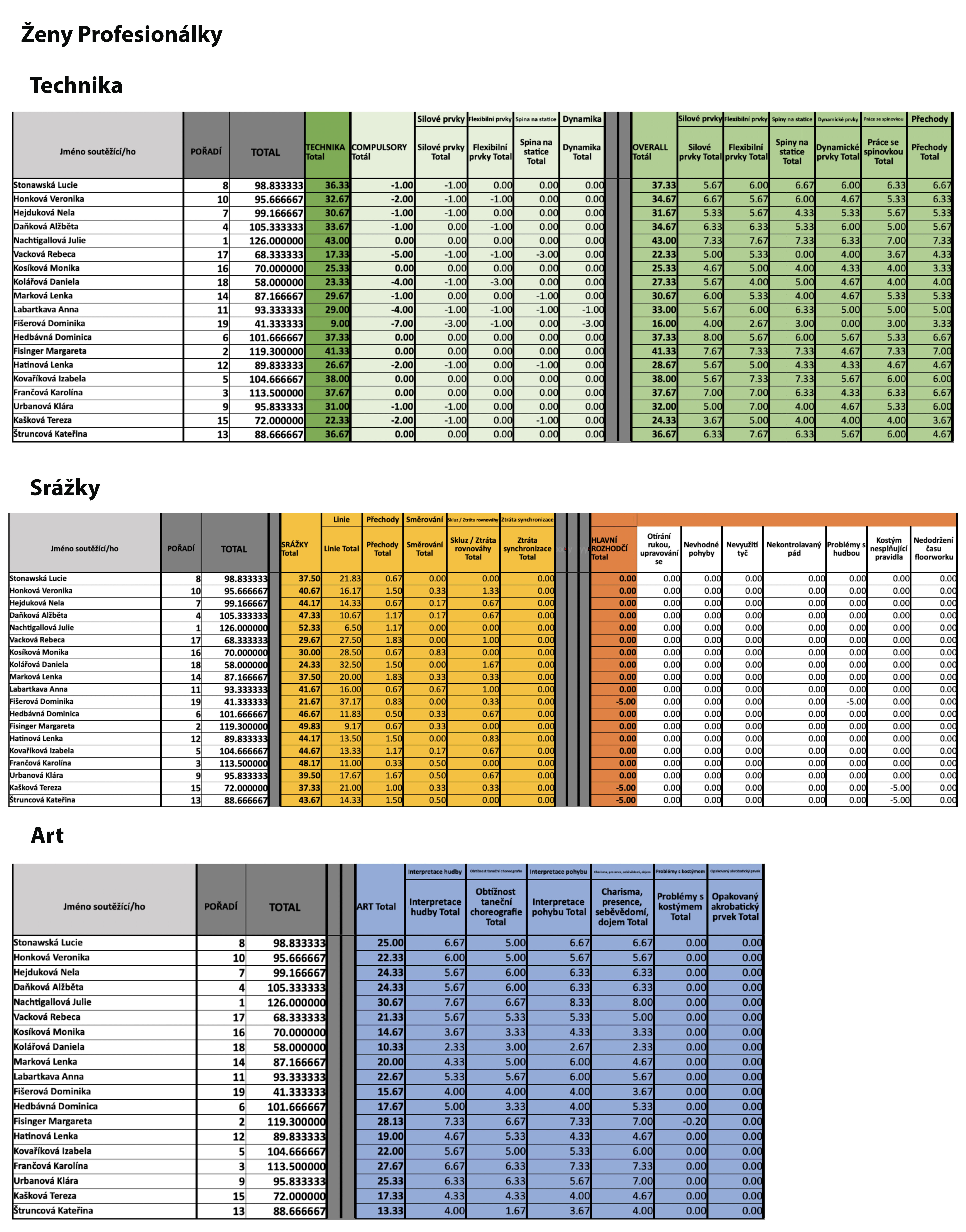Ženy Profesionálky - podrobné hodnocení